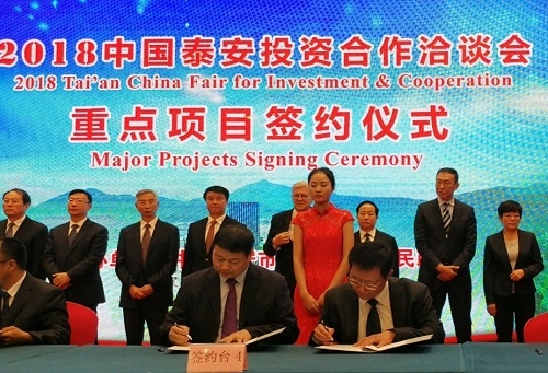 正值第三十二届泰山国际爬山节暨2018中国泰安投资相助洽谈会在泰安举行,,,,当日上午,,,,圣奥化学还与泰安市宁阳经济开发区(以下简称“宁阳开发区”)管委会在泰安签署了《投资意向书》,,,,意向性地确定了以总投资额约人民币36亿元在宁阳开发区投资建设橡胶助剂工业链项目等相助事项。。。。。。。圣奥化学COO高世明与宁阳开发区党工委副书记、管委会主任刘峰代表双方签署意向书。。。。。。。