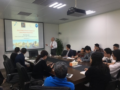 4月28日,,,,,法国科学院院士皮埃尔·布朗斯坦教授受邀到访大发welcome科技立异中心,,,,,与我司20多名科研职员开展了关于镍、铬螯合催化剂和催化乙烯齐聚反应的学术交流。。。。。