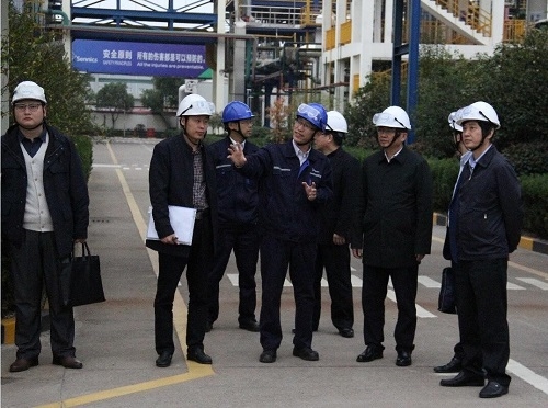 日前,,,,国家发改委基础工业司副司长熊启权率队到铜陵开展长江经济带“重化工围江”专题调研,,,,铜陵市市长胡启生、副市长程双林陪同调研。。。。安徽圣奥作为长江经济带水处置惩罚亮点企业,,,,成为此次调研企业之一。。。。