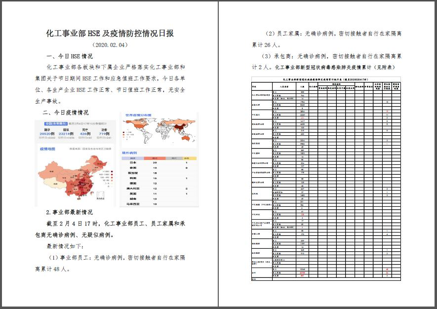 化工事业部实验HSE及疫情防控情形日报。。。各单位组织排查统计“四类重点”职员、眷属及承包商员工康健情形,,,逐日汇报,,,举行动态治理。。。